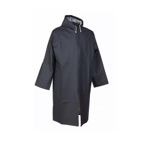 Lacivert Kapüşonlu Diz Altı Pardösü Tipi Yağmurluk